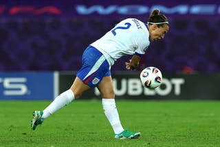 Lucy Bronze adds, referring to penalties and the tape she put on her leg in extra time: “I actually hurt my leg a little bit in the game, which is why I had to take the tape off, so I kind of changed my mind. That’s why I took it off because I thought I’m not sure if I’m going to hurt myself doing something different.